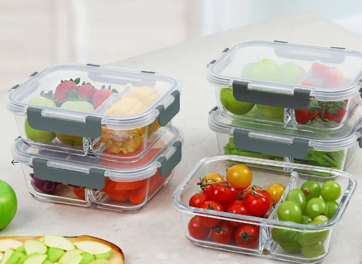 2 Compartment Glass Meal Prep Containers | 10-Piece Set