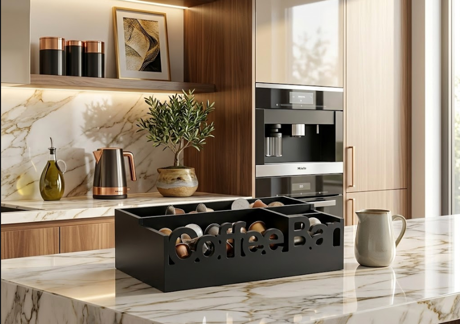 Coffee Bar Organizer, 5 Compartments Coffee, & Condiments Premium Storage Organizer